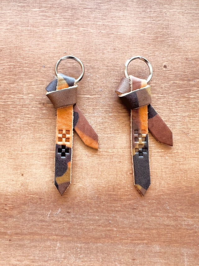 2個セット 沖縄 ミンサー柄 サングァー 本革 キーホルダー カモフラ 在庫品の為数日で発送可能です。 【サングァーとは】 沖縄では昔から現在も尚、色々な場面で使用されているお守り。 普段はススキや紙などで作られておりますが、 革屋らしく革で製作いたしました。 沖縄では日常で使用される事が多く 食料品に付いてきたり、玄関先、交差点など 見かけることがあります。 【ミンサー柄とは】 四角が4つと5つ配置された柄には 「いつ(五)の世(四)までも末永く・・・。」 という想いが込められています。 現代の沖縄でも「いつの世までも、末永く幸せに」という意味を込めて、大切な人へのプレゼントや結婚式の引き出物などに使用されることがあります。 多彩なカラー展開をしておりますのでお守りとして バッグ、キーホルダー、ランドセル等、毎日身に付ける物に付けたり、大切な方へのプレゼントなどにお勧めしております。 ・レザー イタリアレザー (牛革) ・カラー カモフラレザー ・金具 ニッケルシルバー ・サイズ 8×3.5(小リング含まず) •革について イタリア植物タンニンなめし ヌメ革仕様 伝統的な技法で仕上げられたイタリア産の革は適度なコシが有り柔らかめ、革は細かいキズ、シワ、ムラがありますが使用に関しては問題はございません。 •経年変化 使用していくうちに革の色が変化していきます。 ツヤが増し色が濃く深みを増していきます。 注 色の変化を好まない方は購入をお控え下さい。