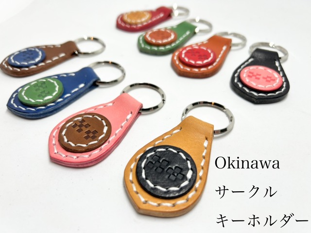• Okinawa ミンサー柄刻印 本革 サークルキーホルダー