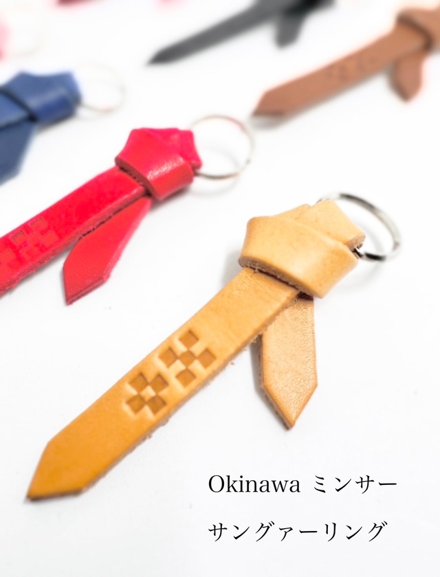• Okinawa ミンサー柄 サングァー チャーム 本革 キーホルダー