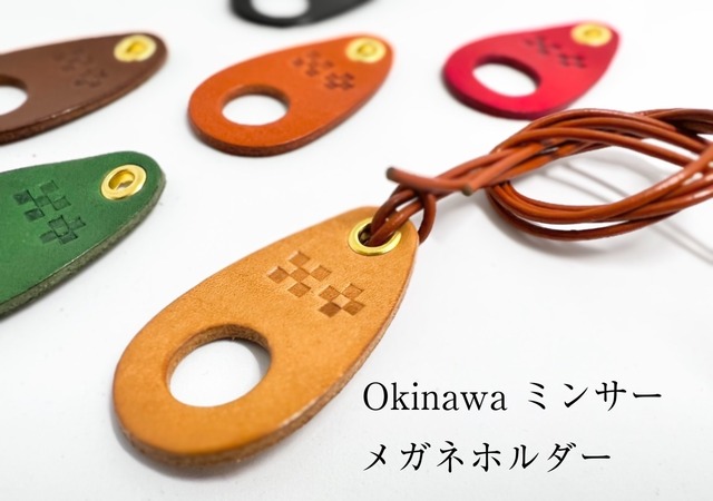 Okinawa ミンサー柄を刻印したメガネホルダーです。 サングラスを掛けたり、ちょっとメガネを外したい時。 ネックレスとしても。 紐はご自身で長さを調節してください。 【ミンサー柄とは】 四角が4つと5つ配置された柄には 「いつ(五)の世(四)までも末永く・・・。」 という想いが込められています。 現代の沖縄でも「いつの世までも、末永く幸せに」という意味を込めて、大切な人へのプレゼントや結婚式の引き出物などに使用されることがあります。 多彩なカラー展開をしておりますのでお守りとして 毎日身に付ける物に付けたり、大切な方へのプレゼントなどにお勧めしております。 ・レザー イタリアレザー (牛革) ・カラー 6色 ・金具 真鍮 ・サイズ 5.5×3.2(紐は約47cm) <オーダー方法> ご購入の際はオプションよりカラーをお選びください。 •革について イタリア植物タンニンなめし ヌメ革仕様 伝統的な技法で仕上げられたイタリア産の革は適度なコシが有り柔らかめ、革は細かいキズ、シワ、ムラがありますが使用に関しては問題はございません。 •経年変化 使用していくうちに革の色が変化していきます。 ツヤが増し色が濃く深みを増していきます。 ※色の変化を好まない方は購入をご控え下さい。