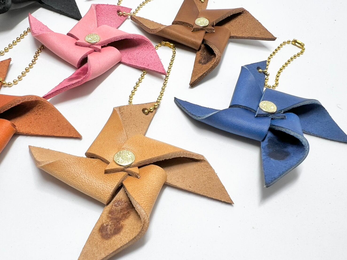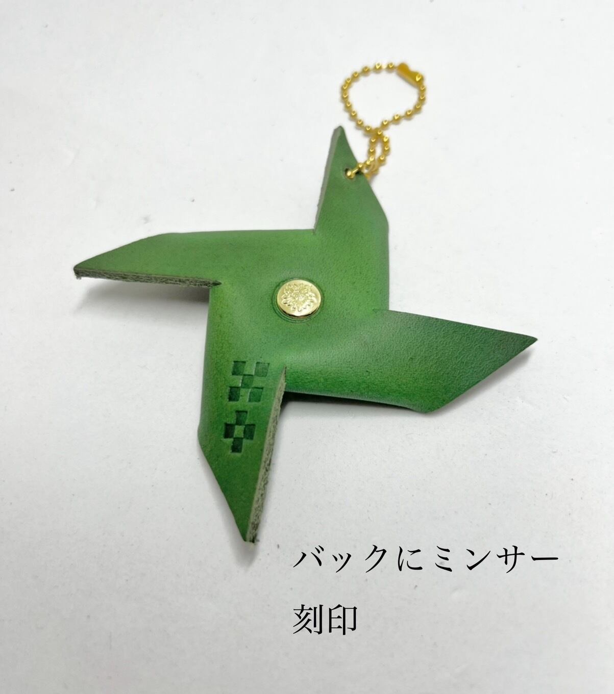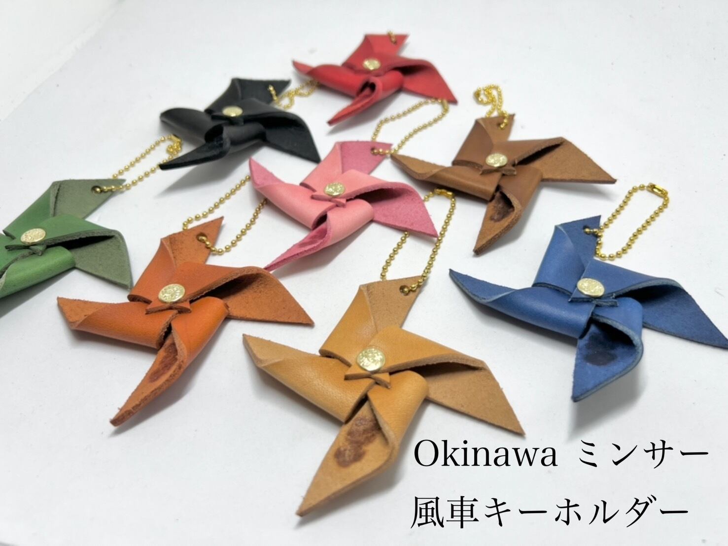 Okinawa ミンサー柄 レザー風車キーホルダー