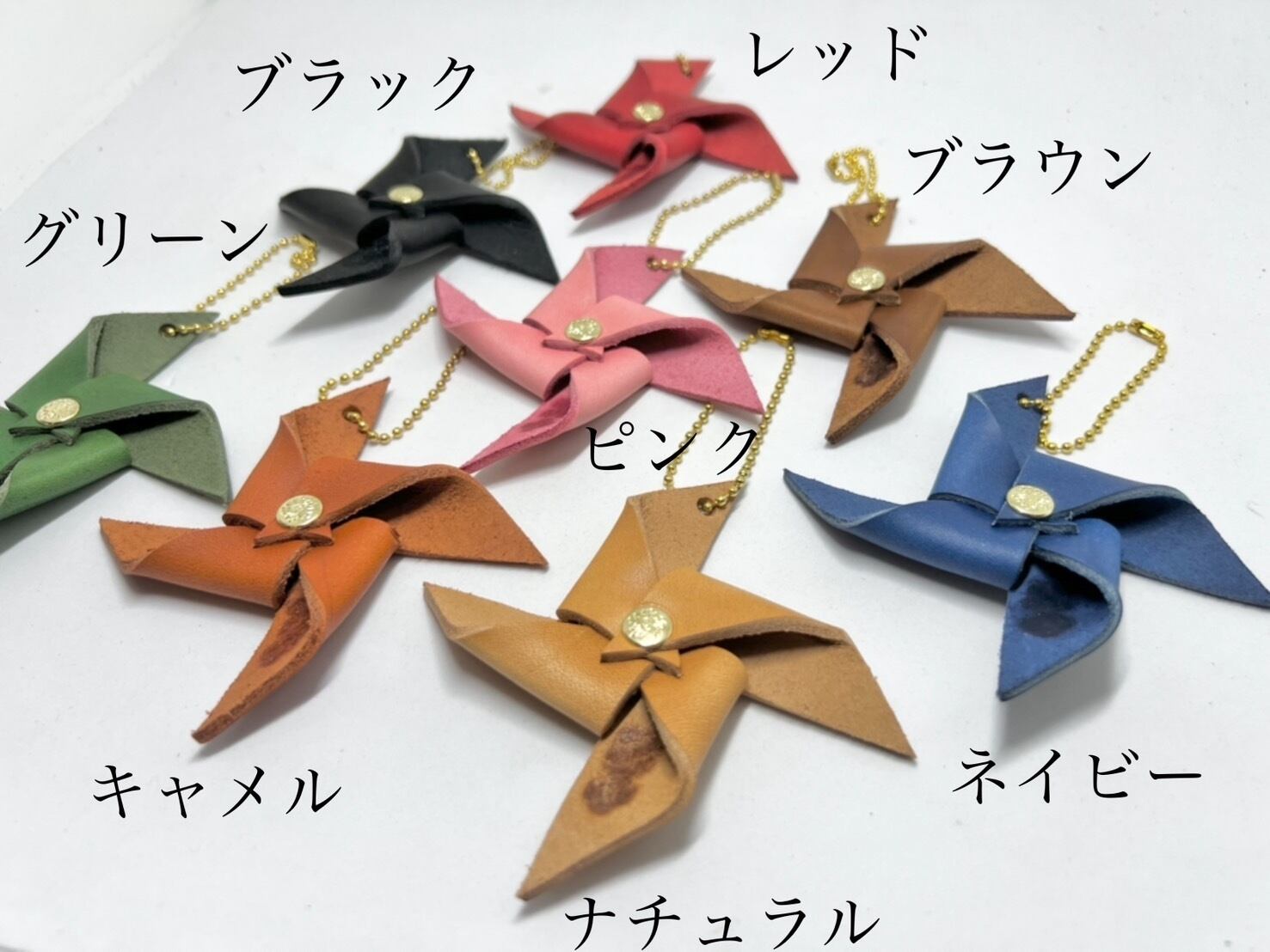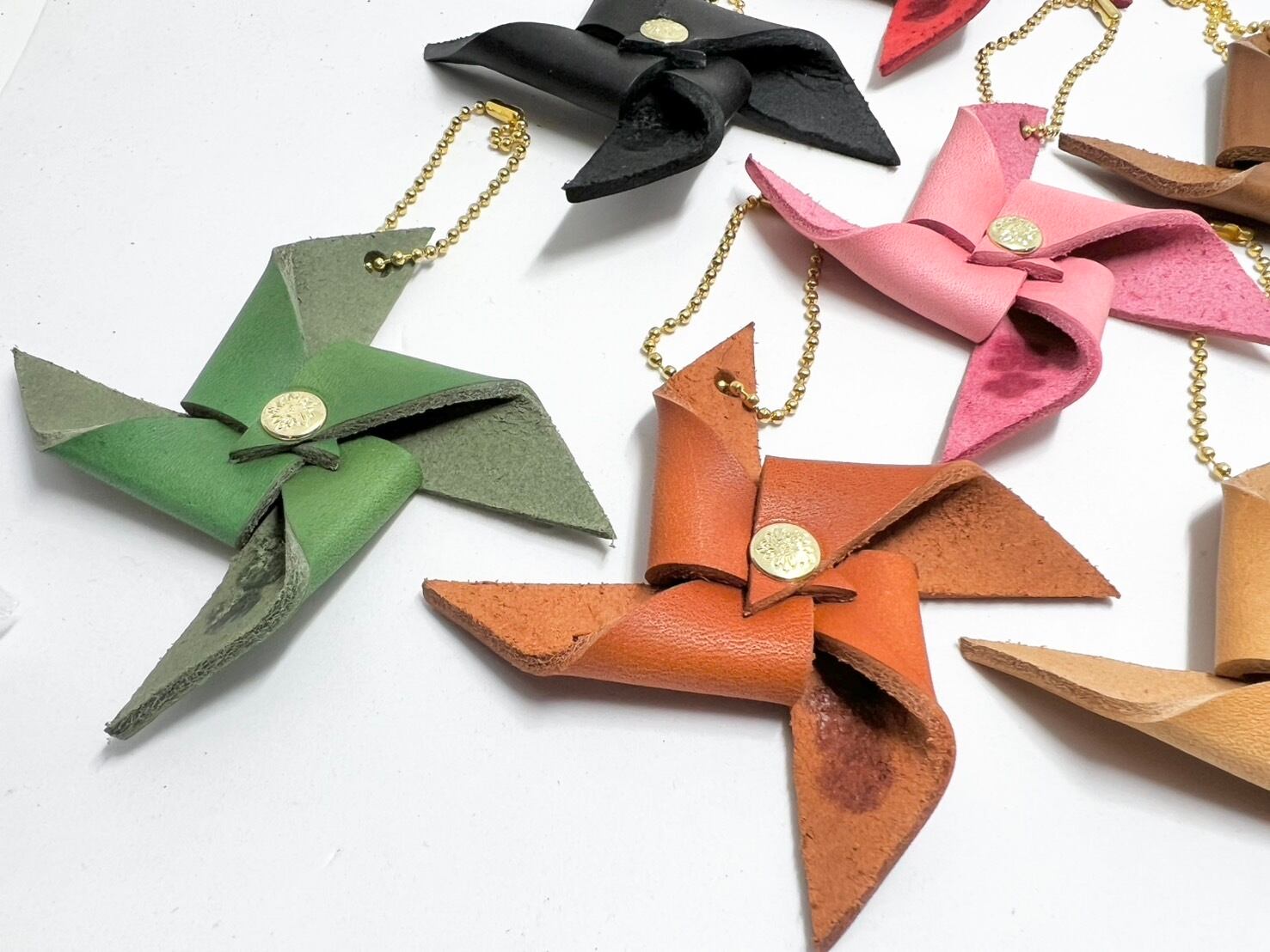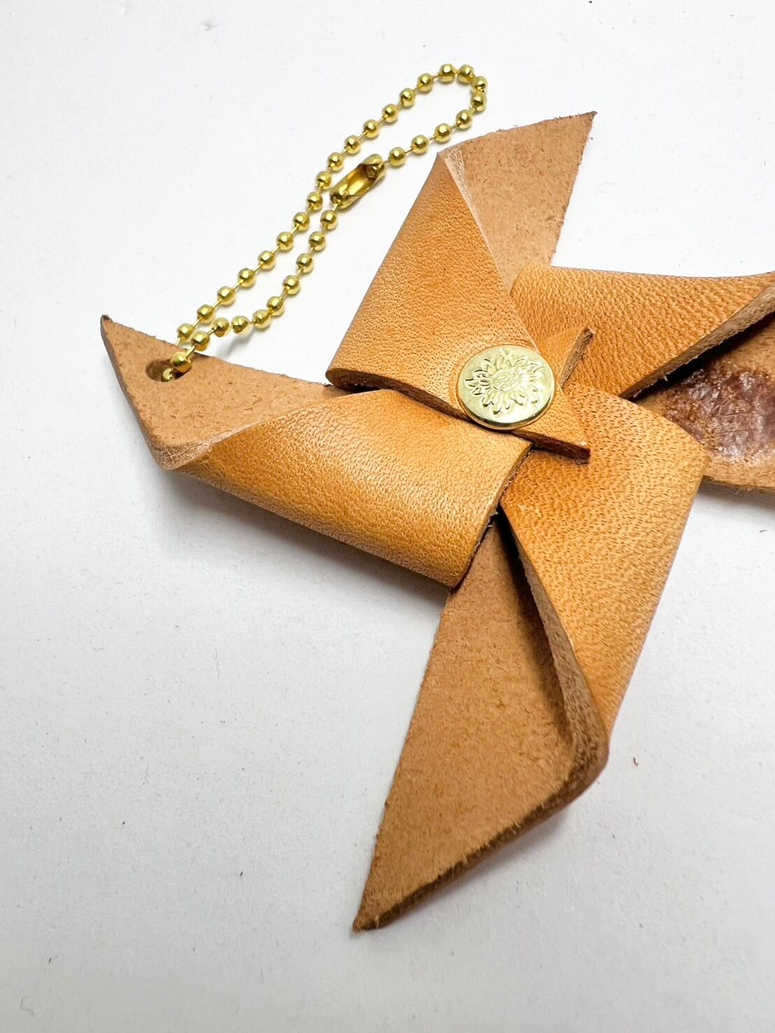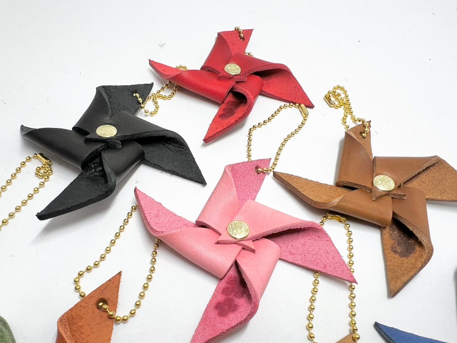 Okinawa ミンサー柄 レザー風車キーホルダー