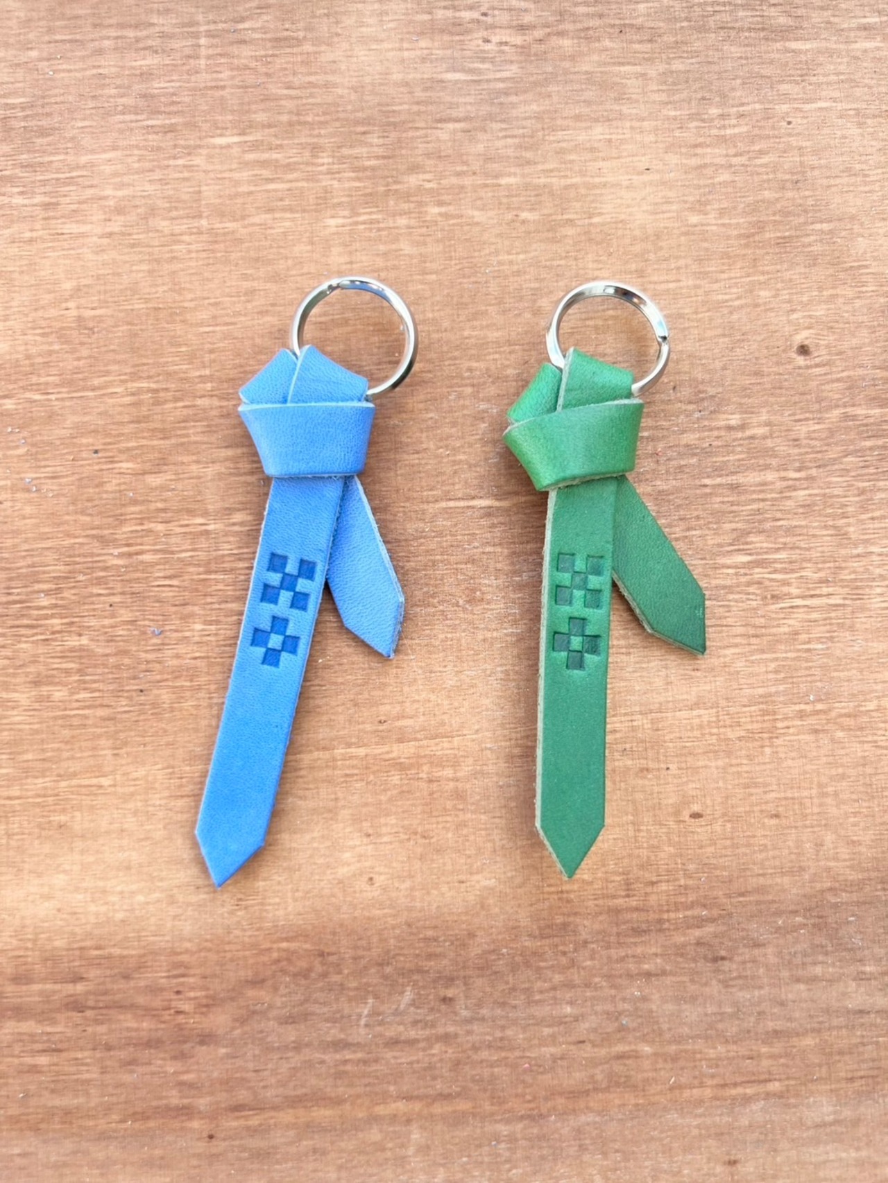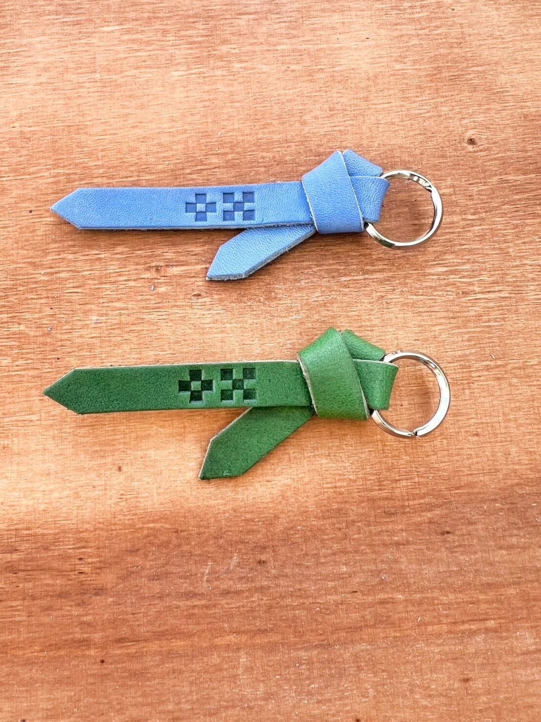 2個セット Okinawa ミンサー柄 サングァー チャーム 本革 ブルー グリーン