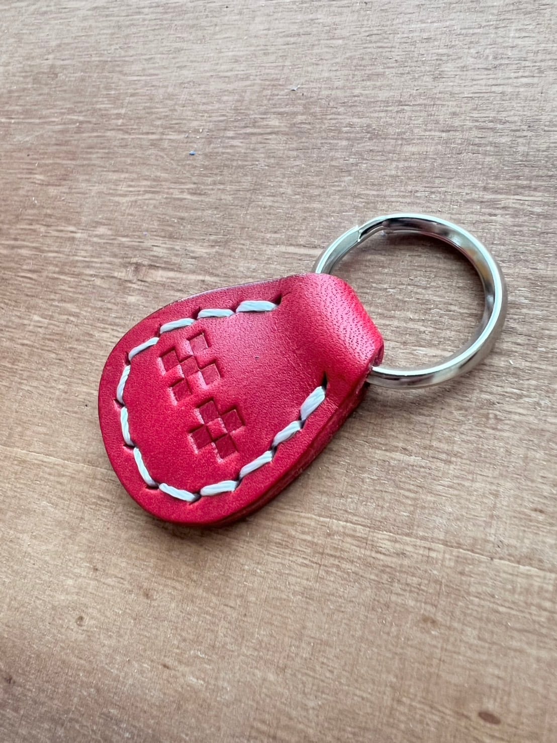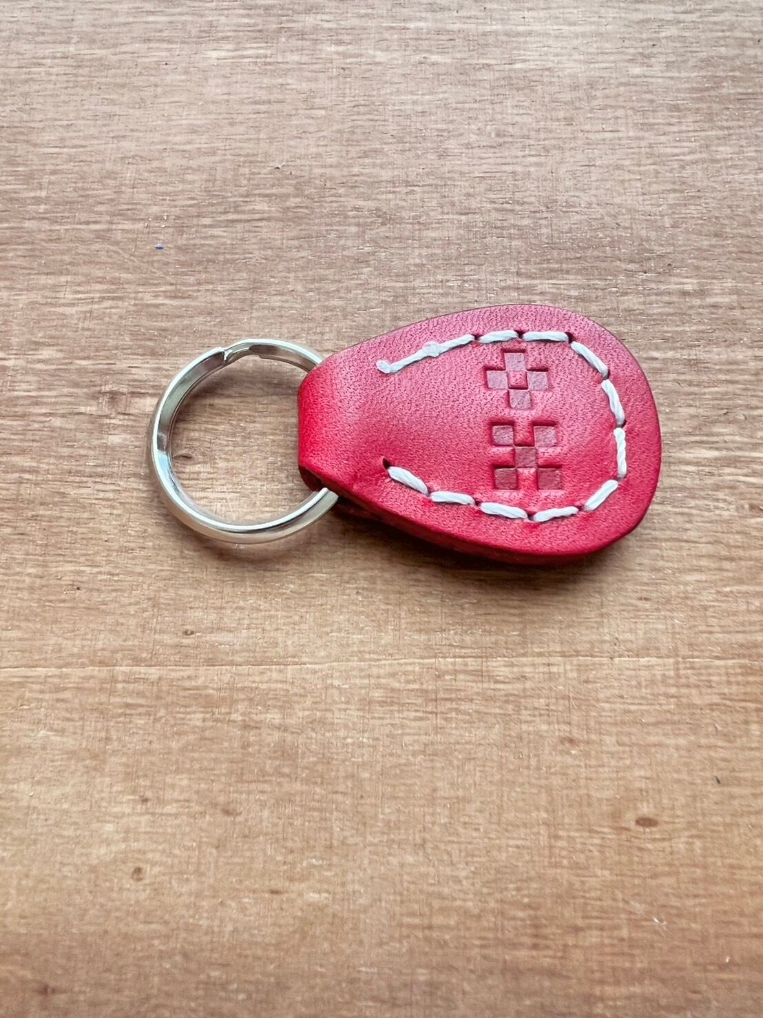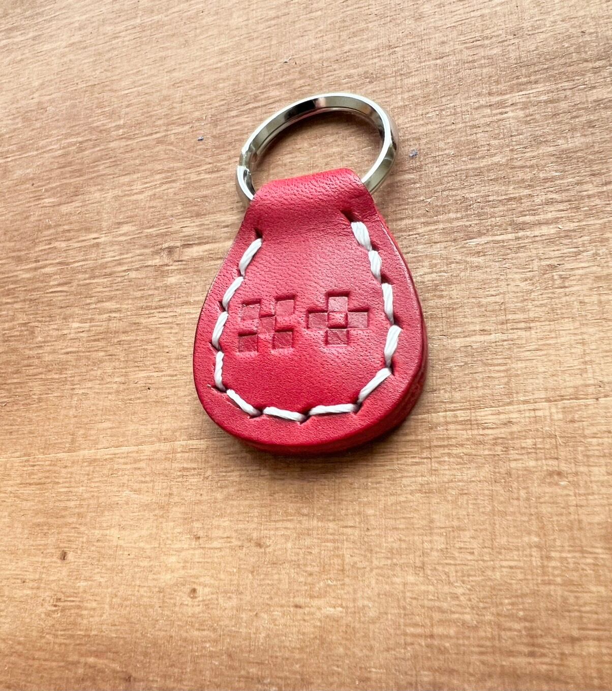 沖縄 ミンサー柄 マース(塩)入り ミニキーホルダー レッド