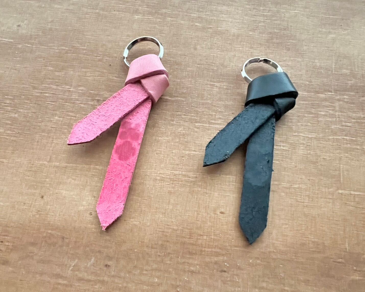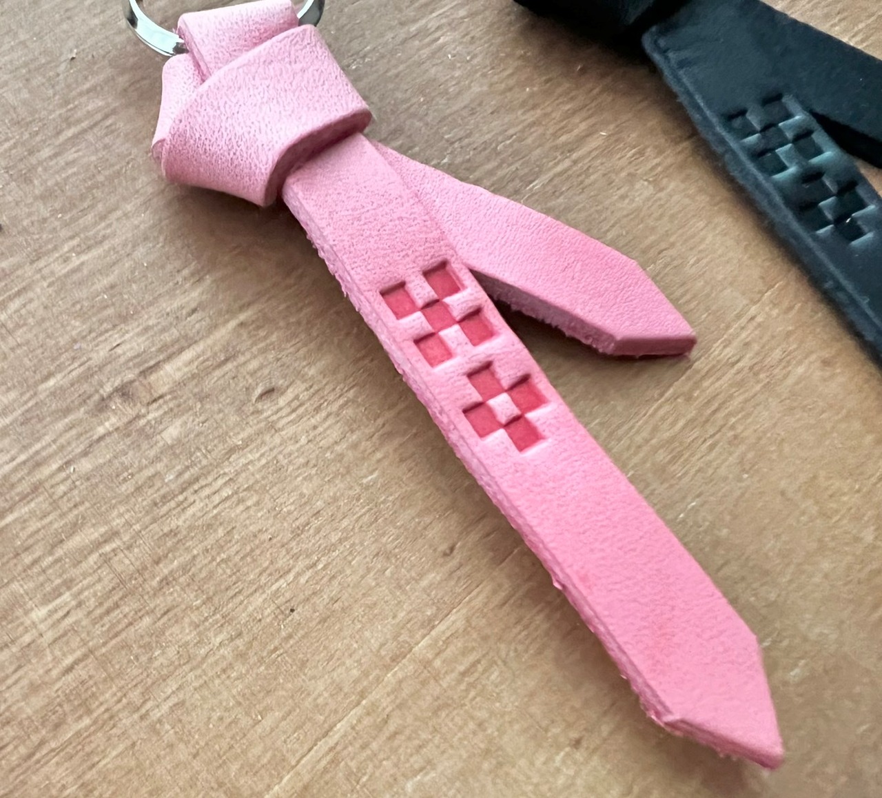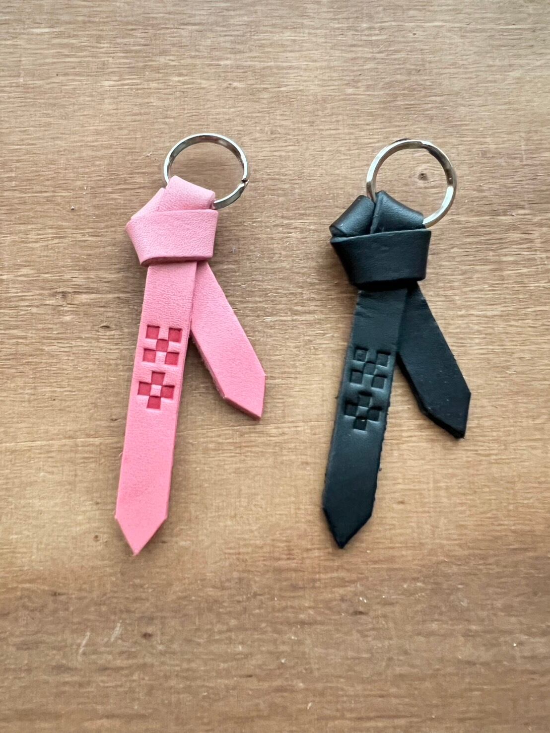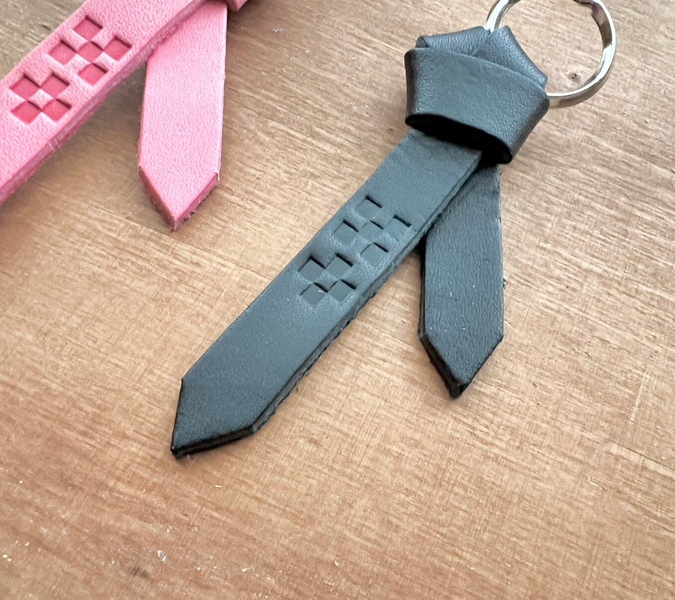 【2個セット】 沖縄ミンサー柄 サングァー チャーム 本革 キーホルダー ピンク黒