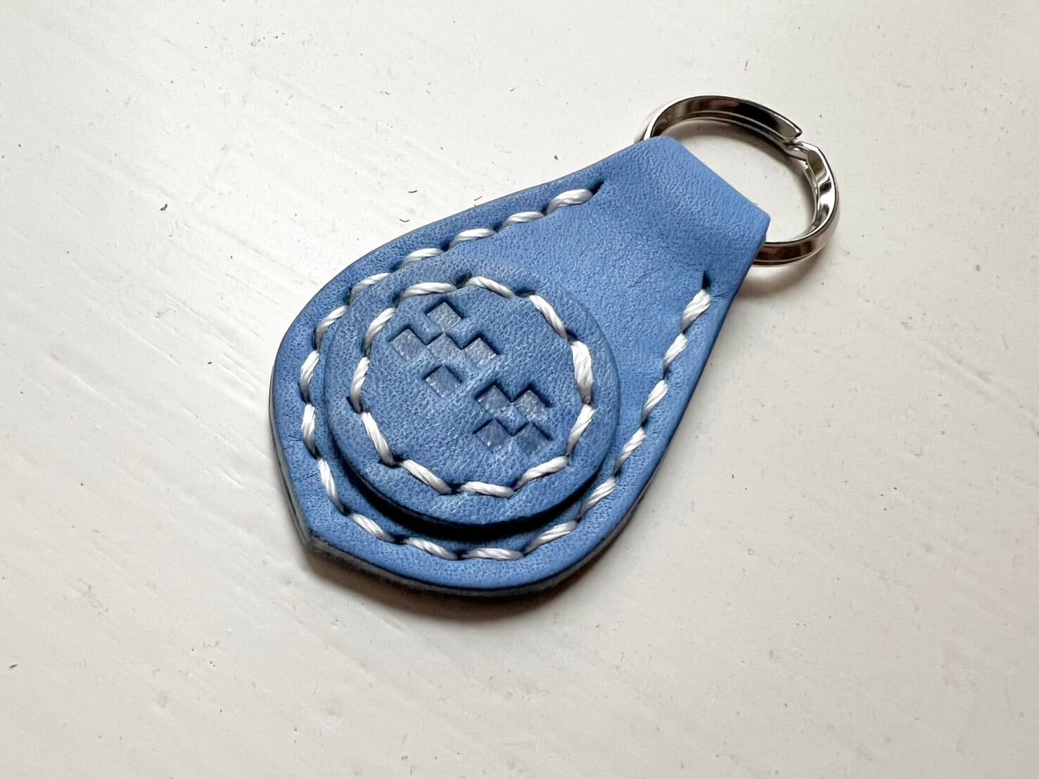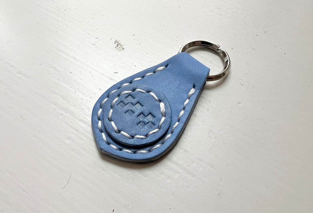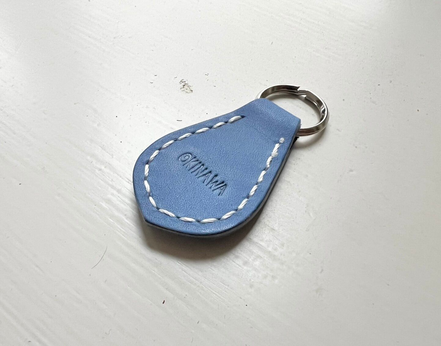 南国らしいカラフルなカラーで製作する本革キーホルダーです。