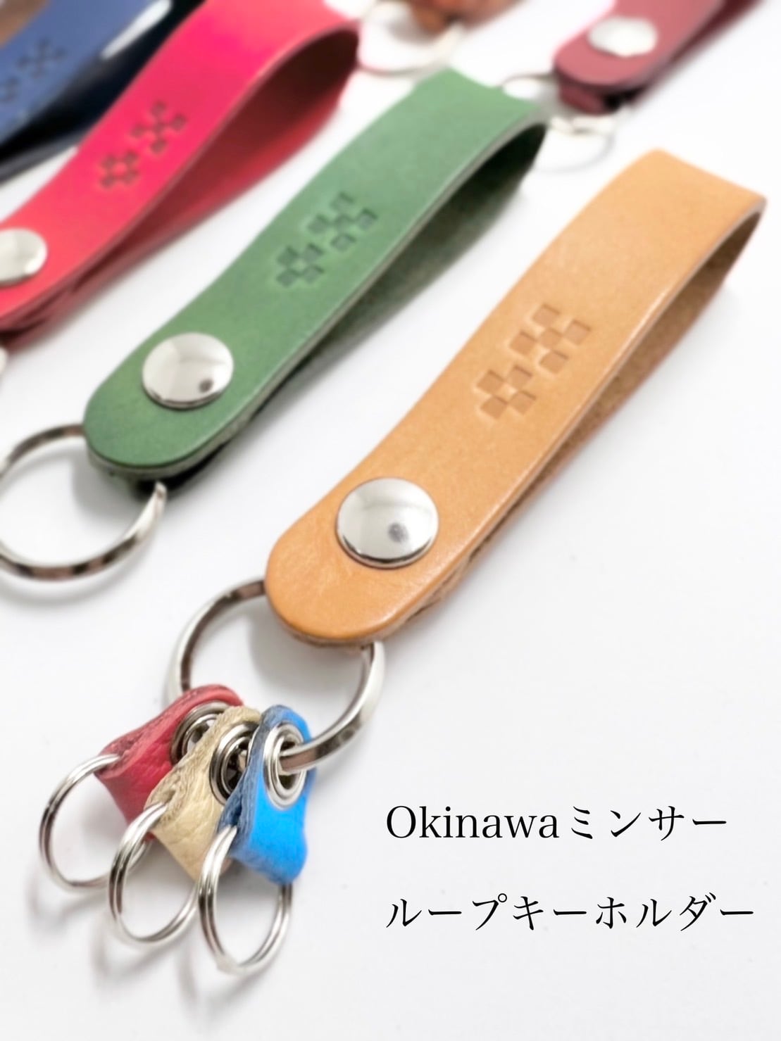 Okinawa ミンサー柄 本革 ループキーホルダー