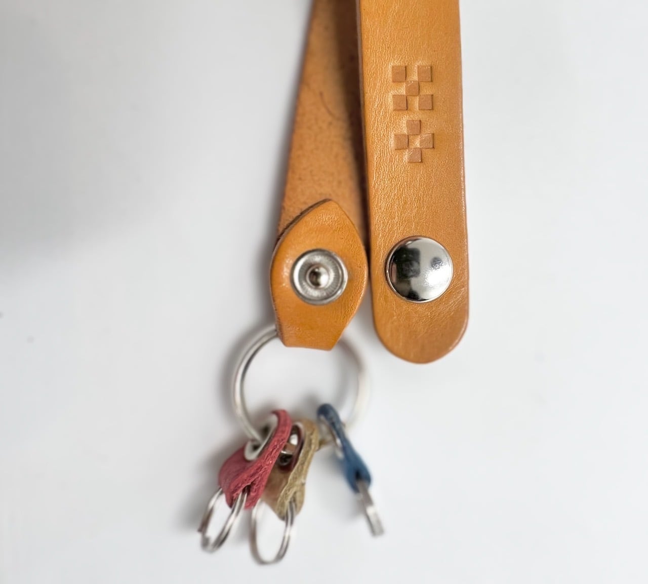 また9色から選べる小さなキーリング付きなので家や職場などのカギを使い分ける事が出来ます。