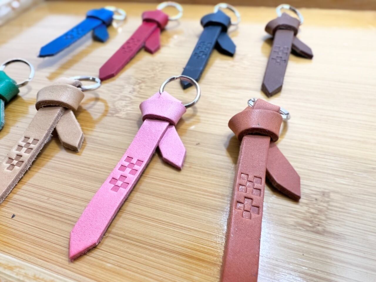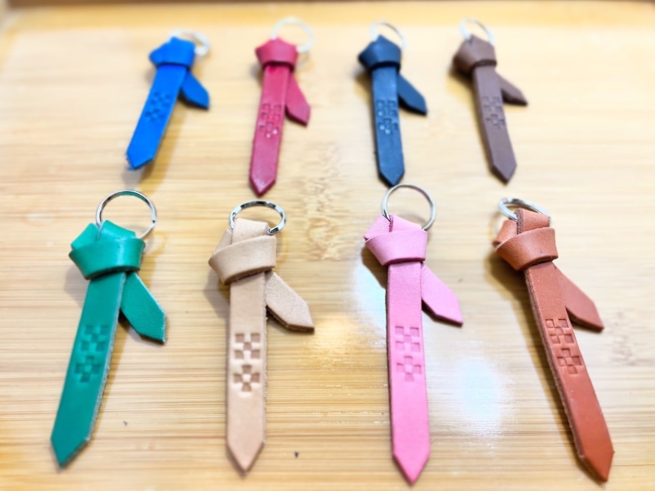 Okinawa ミンサー柄 サングァー チャーム 本革 キーホルダー