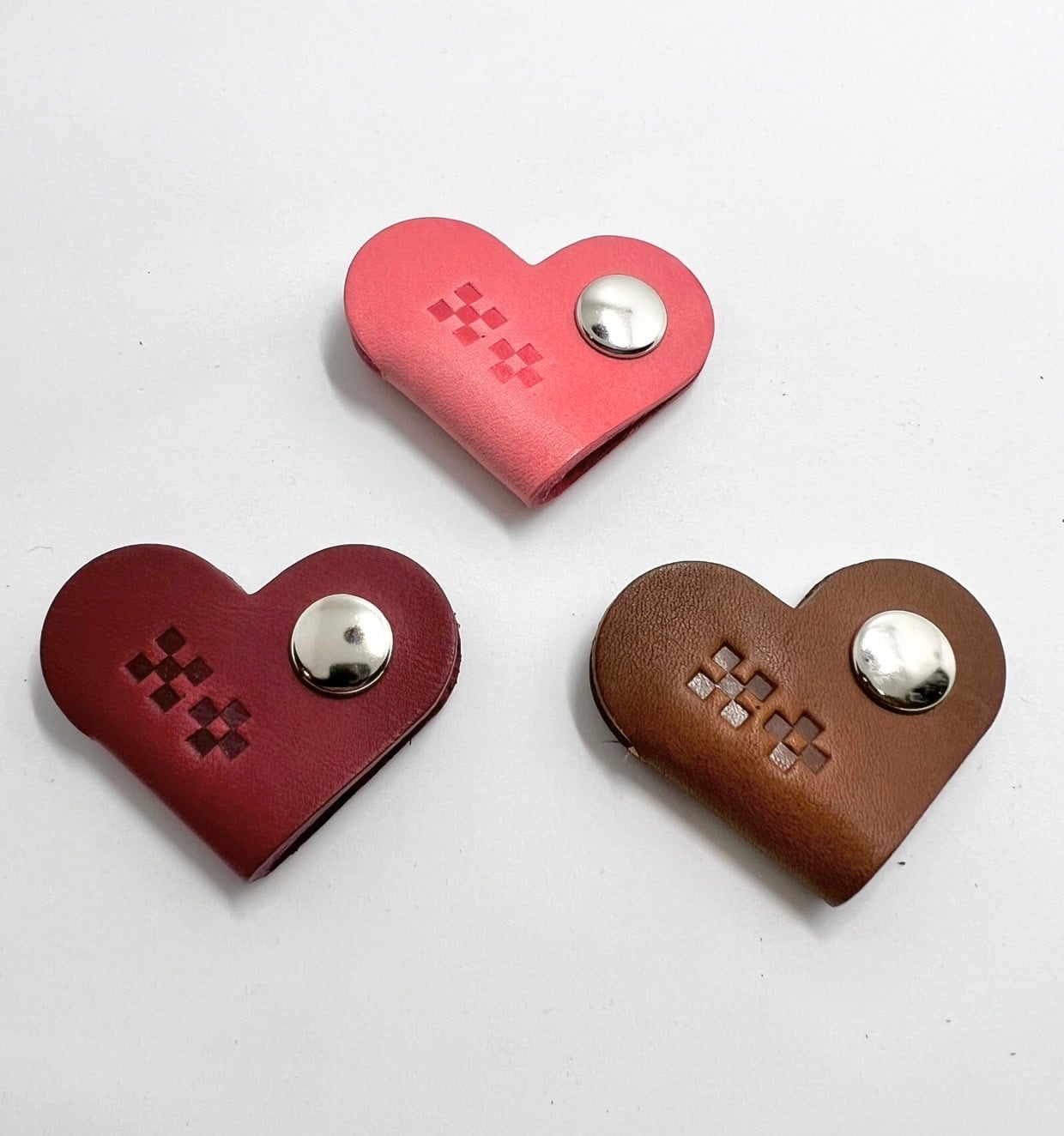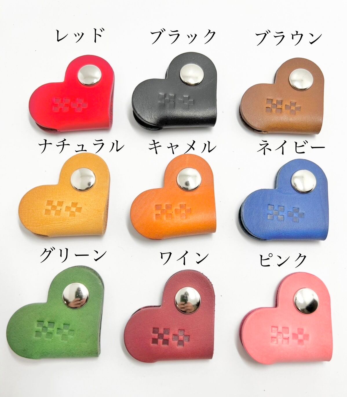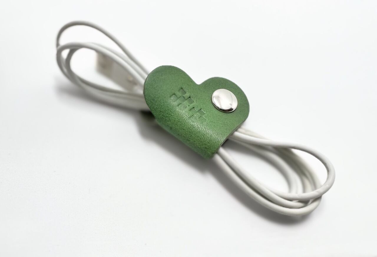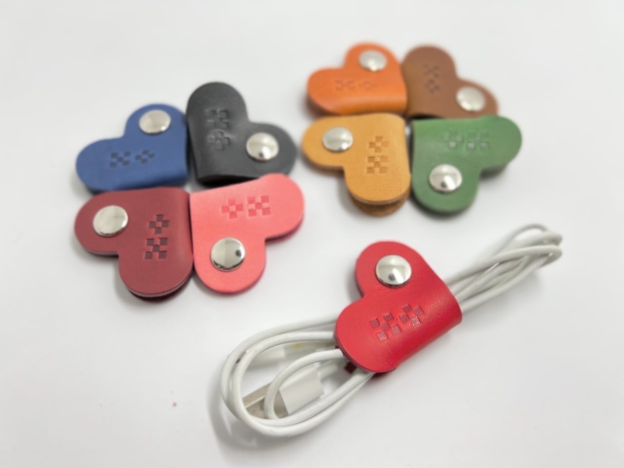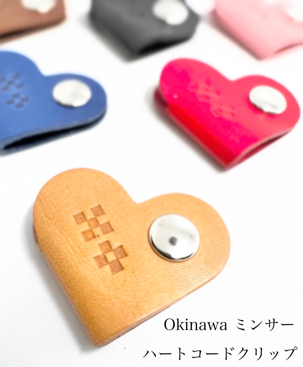 沖縄のミンサー柄を刻印したハート型コードホルダーです。