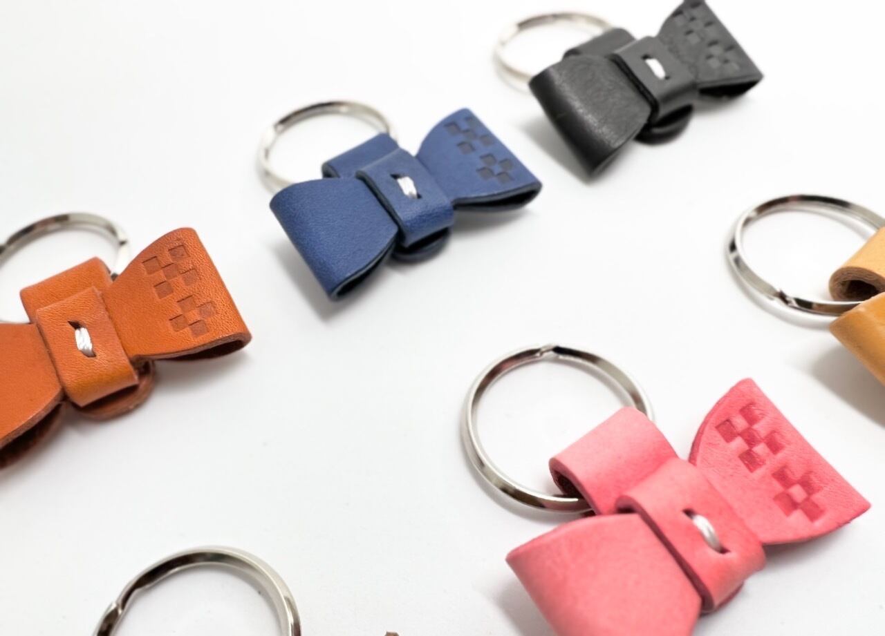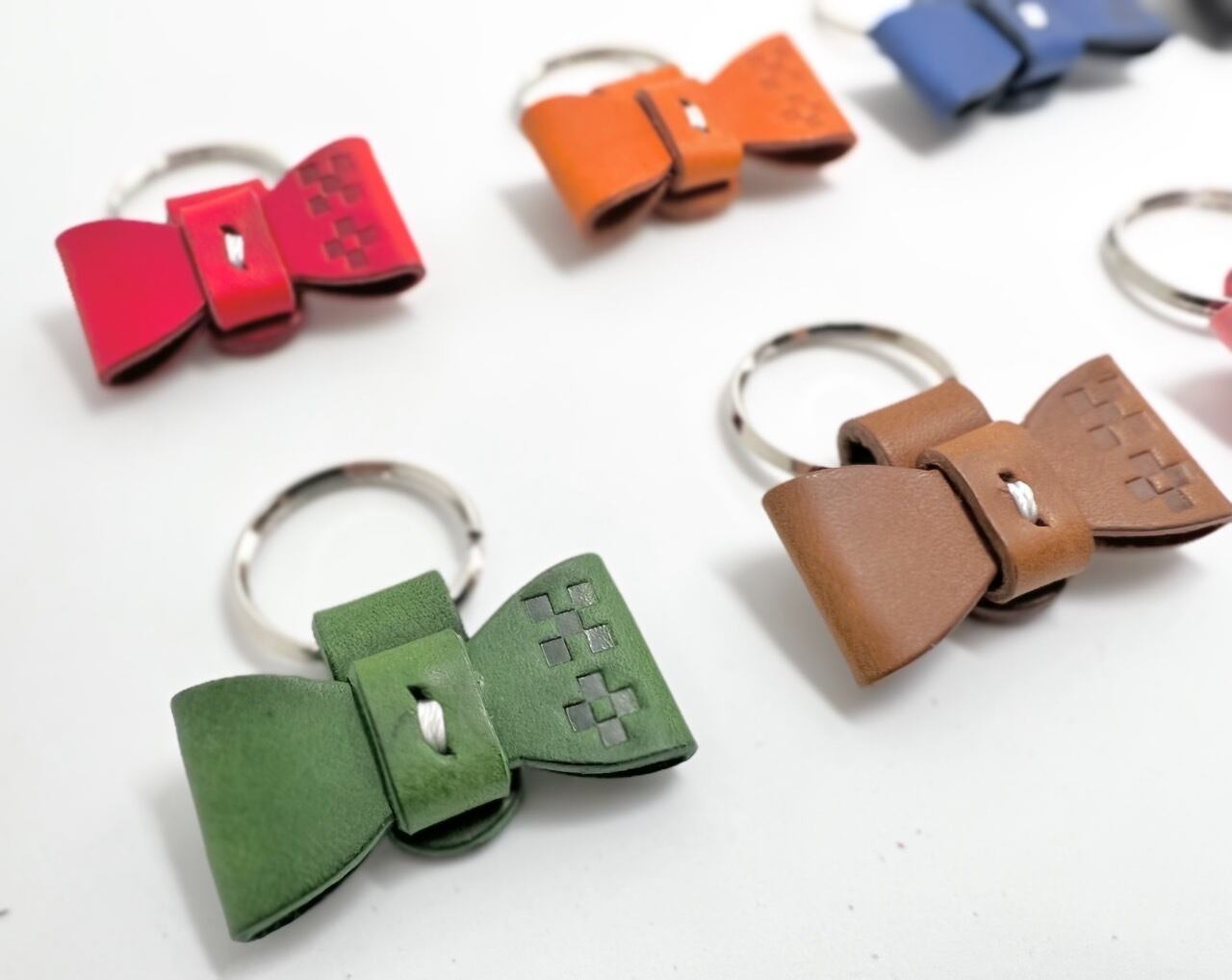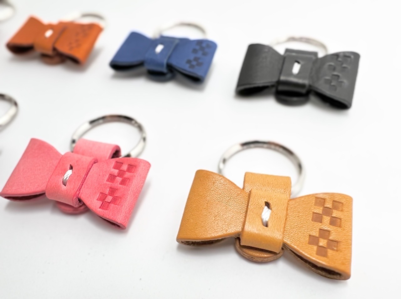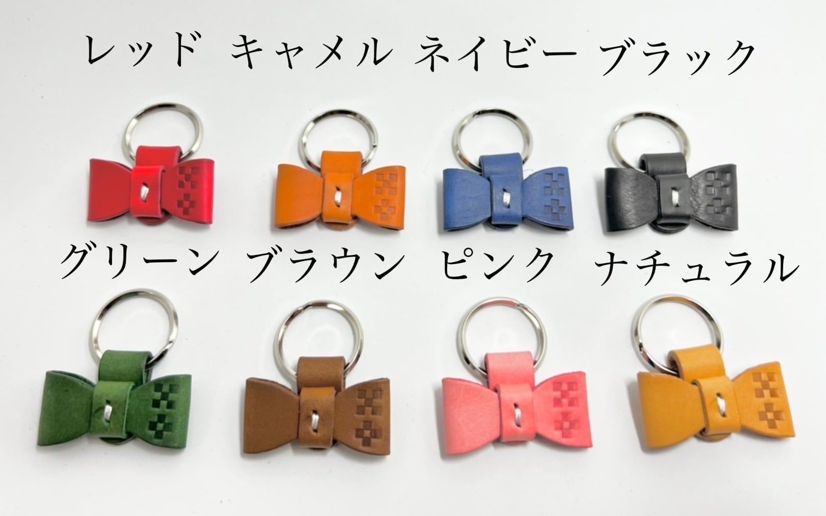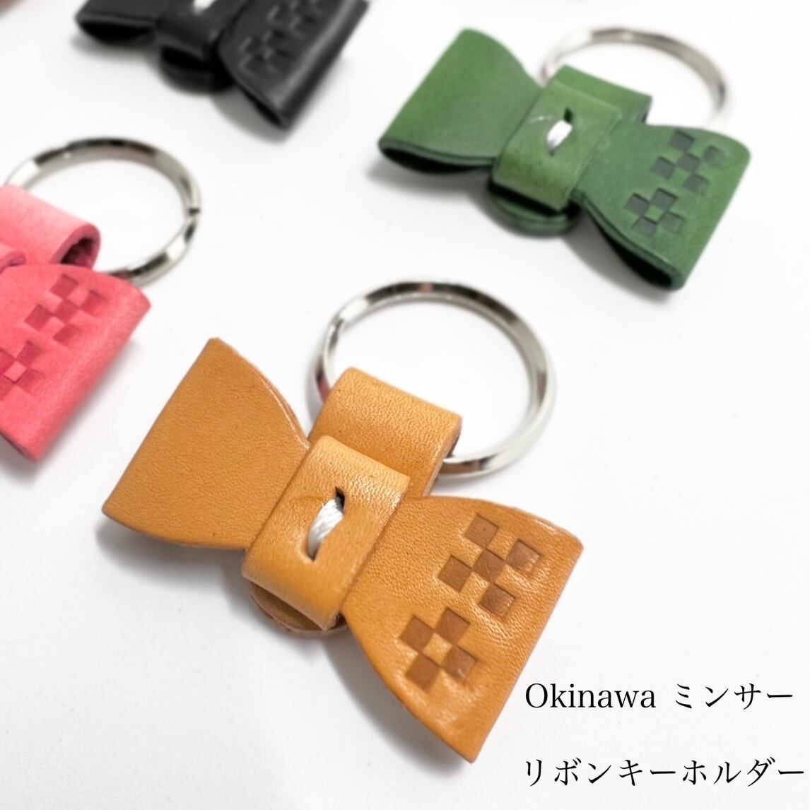Okinawa ミンサー柄 本革 リボン キーホルダー